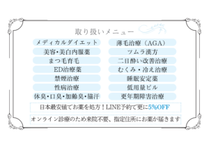 薬の効果につきましても公式LINE内で詳しく説明がありますので、副作用などが心配な方でも事前にお調べすることが出来ます。